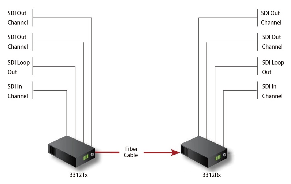 単一のSMファイバーで270Mbpsから12Gbps、最大10 kmまで信号を拡張でき、SMPTE SDI規格に適合し、10kmの距離全体でSMPTE424M、297M、292M、259M、2081、2082、およびASIのエラーのない伝送を維持します。