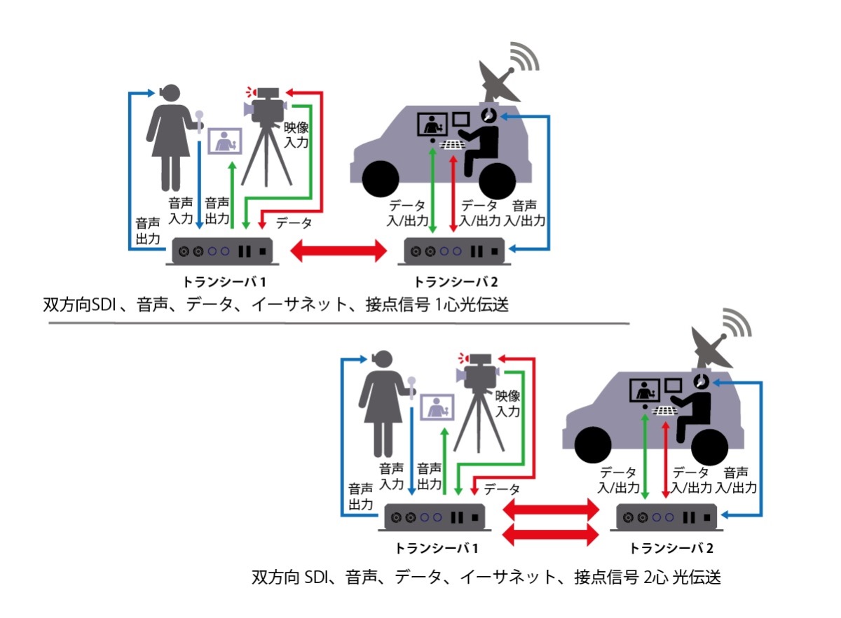 双方向 3G/HD/SD-SDI + アナログ音声 + イーサネット + データ + 接点 2心 光伝送機