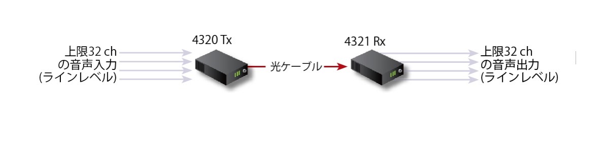 FiberLink 4320 シリーズは、32chの独立した音声信号を、1心のマルチモードまたはシングルモード光ファイバーケーブルで、850、1310、1550 nmのいずれかの波長でデジタル伝送します。オプションで冗長化が可能です。レンタル、舞台、劇場、競技場、テーマパーク、放送等のアプリケーションに最適です。.