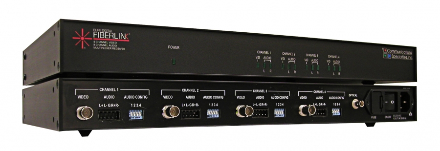 FiberLink 7142 シリーズ は、4チャンネルの非圧縮ビデオ信号と、8チャンネルの独立音声チャンネルを、 1心マルチモードまたはシングルモード光ファイバーケーブルで、850nm、1310nm、1550 nm のいずれかの波長でデジタル伝送します。映像チャンネルはNTSC、PAL、SECAM標準に対応します。