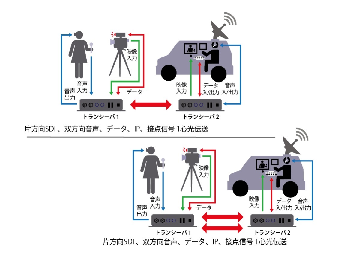 手のひらサイズのボックス型とカード型があり、放送、企業内スタジオ、OB Van、レンタルステージング、公会堂、スタジアム、劇場、空港、輸送基地、遠隔教育、手術医療映像等に最適です。