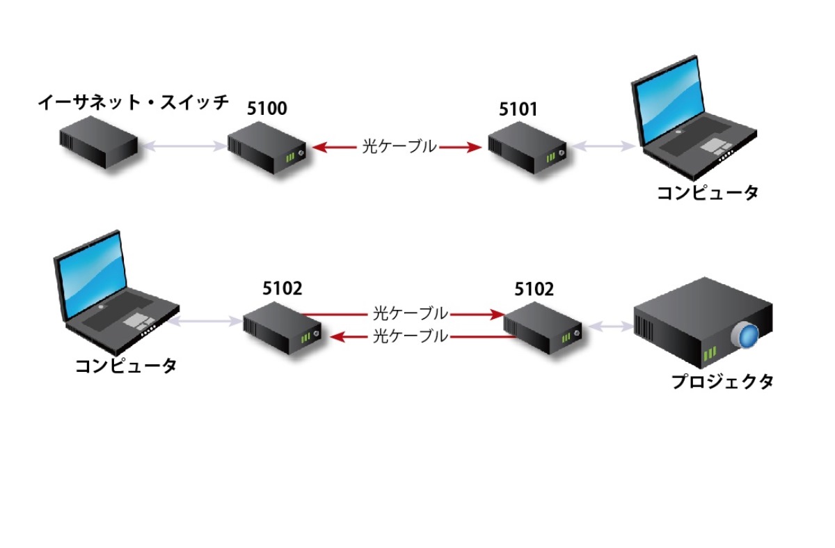 FiberLink 5100シリーズは、10/100/1000 Base-Tイーサネットを、1心のシングルモードまたはマルチモード光ケーブルで伝送します。FiberLink 5100は、フルデュープレックスとハーフデュープレックスの両方に対応し、IT、放送、プロA/Vアプリケーションに最適です。
